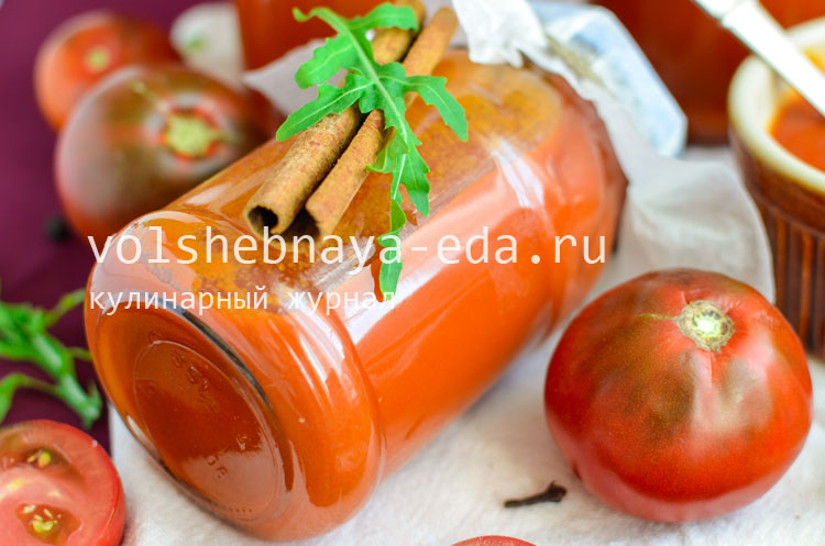 Возвратите соус на плиту, добавьте масло и уксус, тщательно перемешайте. Дайте соусу покипеть еще 5 минут. Разлить кетчуп по стерилизованным банкам, закупорить и оставить остывать, укутав в одеяло. Соус в итоге станет еще более густым, а его хранение позаботится о ваших запасах на зиму!