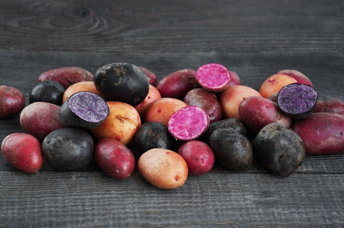 Представьте себе картофель с кожурой, напоминающей обугленное дерево. Этот загадочный «Вителот» имеет неровную, почти рептильную текстуру, а внутри скрываются удивительно фиолетовые клубни. Вкус этого сорта не отличается от привычного картофеля, но он определённо станет центром внимания на любом столе.