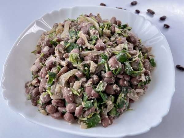 В завершающем этапе перемешайте обжаренный лук с фасолью и добавьте нарезанную кинзу. Лебия Харкалия готова поразить своей насыщенной текстурой и ароматами!