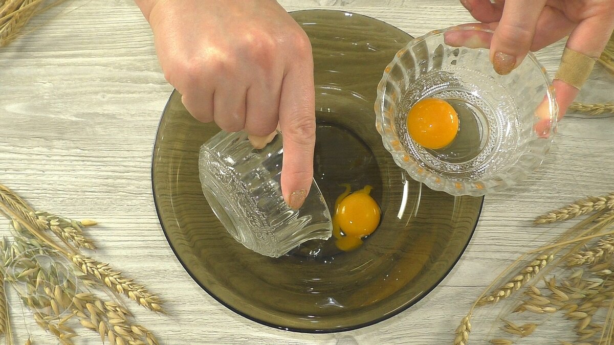 Сначала в глубокую миску помещают яйцо и белок одного яйца. Желток оставляется для смазки. К этим ингредиентам добавляют мед и тщательно перемешивают.