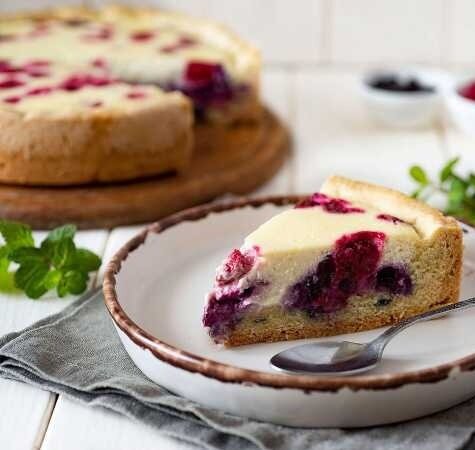 Этот заливной пирог станет настоящим украшением любого стола. Легкая текстура, ароматный творог и свежие ягоды создают волшебный вкус, который невозможно забыть. Идеален для семейного чаепития или встреч с друзьями.