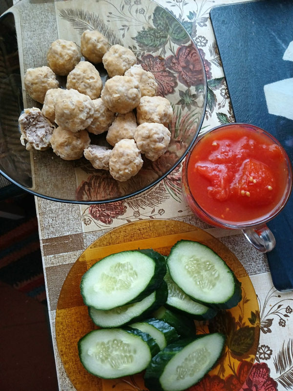 Фарш необходимо пропустить через мясорубку вместе с луком, после чего добавить соль и перец. Из полученной массы скатать небольшие шарики, напоминающие фрикадельки.