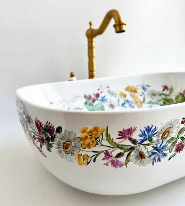 Особое внимание привлекает раковина, оформленная в стиле космей. Такие цветы, растущие в саду, выразительно отражают индивидуальность и характер автора, ведь каждая деталь здесь выполнена с любовью и вниманием к нюансам. Этот подход позволяет создавать по-настоящему уникальные вещи, которые принесут радость их обладателям.