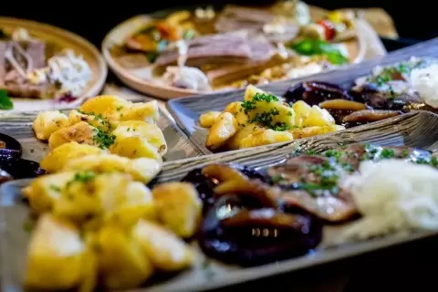 Второй вариант обогащает текстуру: картофель по-деревенски готовится в большем объеме масла в казане, что делает корочку особенно хрустящей и ароматной. Чеснок, соль и перец работают как усилители вкуса, позволяя блюду остаться простым, но выразительным.