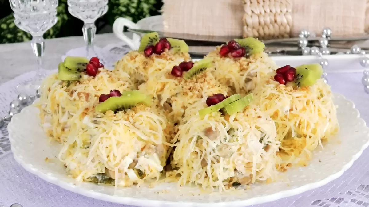 Представляем вашему вниманию уникальный салат, который станет настоящим украшением новогоднего стола. Сочетание свежих и аппетитных ингредиентов, необычная подача – этот салат не только порадует глаз, но и удивит вкусовыми качествами даже самых искушенных гостей.