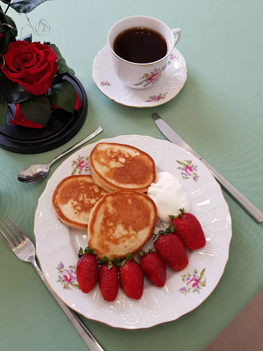 6. Подавайте горячими, добавляя сметану и свежую клубнику. Приятного аппетита!