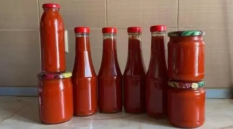 Горячий кетчуп разливают по стерилизованной таре и закатывают крышками. Банки переворачивают, укутывают и дают полностью остыть.