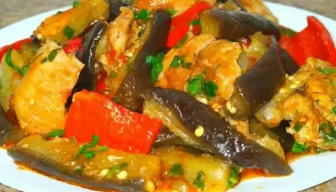 - Гармония вкусов: Курица в сочетании с баклажанами, помидорами, болгарским перцем и луком создаёт гармоничную симфонию, где каждый ингредиент находит своё место.