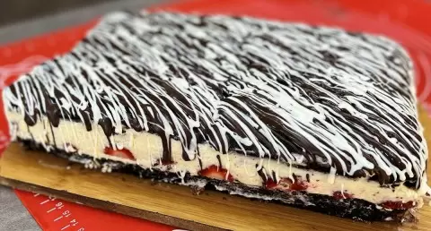 Пока корж выпекается, необходимо приготовить заварной крем. Не забудьте приобрести свежую клубнику, которая станет прекрасным дополнением вашего десерта.