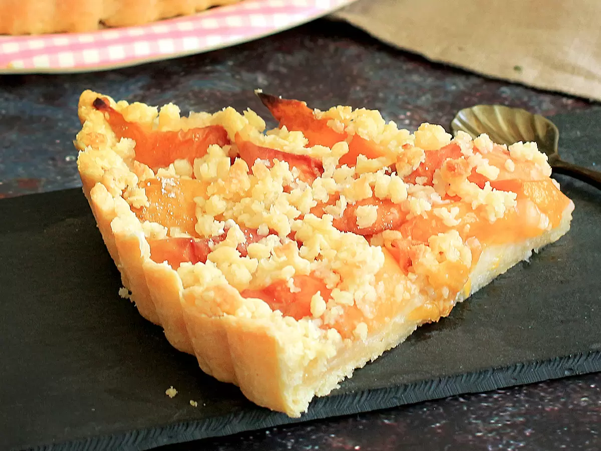Основой этого пирога служит рассыпчатое тесто, которое с легкостью принимает форму любой формы для выпечки. Оно не крошится, а остаётся мягким и влажным благодаря используемым продуктам. Важный момент: именно от сочности персиков зависит, насколько сладким или кислым получится готовое изделие. Сахар стоит добавлять умеренно — холодный фрукт обеспечит необходимую влагу для начинки.