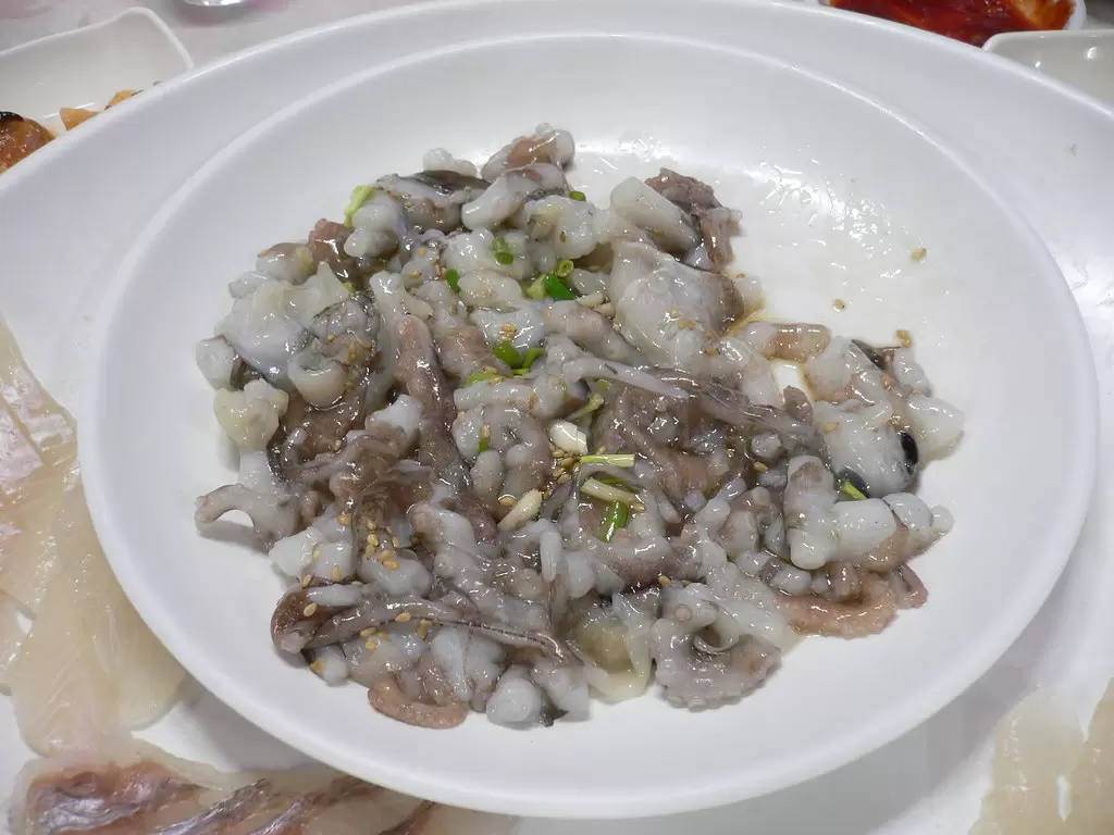 Название «саннакчи» можно разбить на две части: «сан», означающее «живой», и «накчи», что переводится как «осьминог». В отличие от традиционных морепродуктов, этот осьминог подается еще шевелящимся — щупальца продолжают двигаться благодаря активным нервным окончаниям. Это создает особое эстетическое и гастрономическое впечатление, ведь щупальца могут прилипать к языку, внутренней стороне щек или даже горлу, что добавляет некого острого вкуса к этому кулинарному приключению.