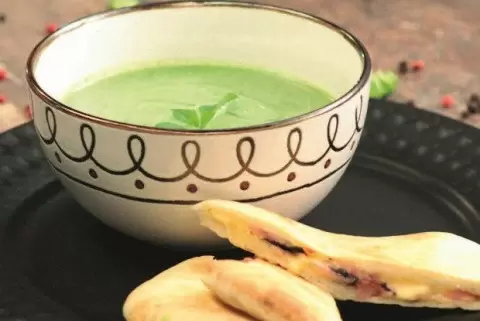 Сочные и ароматные ингредиенты превращаются в настоящий кулинарный шедевр. Этот зеленый крем-суп с питой станет настоящим украшением вашего обеда!