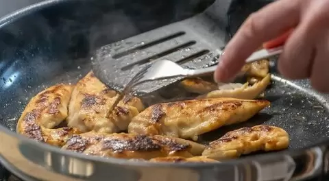 - Классический способ жарки: просто нарежьте грудку и обжарьте на сковороде до золотистой корочки.