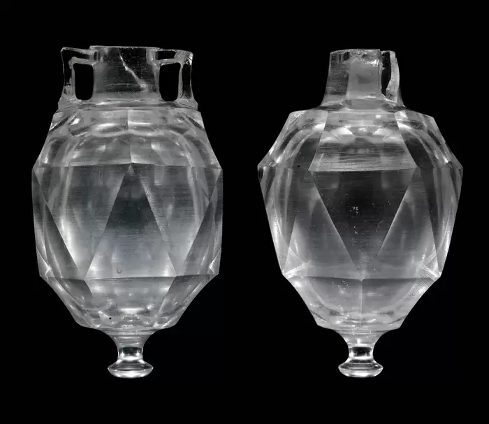 Сосуды, изготовленные из горного хрусталя — совершенно прозрачной разновидности кварца, — считались настоящей редкостью и пользовались большим спросом в античном мире. Римляне, подобно своим предшественникам грекам, верили, что горный хрусталь представляет собой затвердевший лед, созданный в результате сильного холода. Этот миф придавал камню дополнительную ценность и статус.