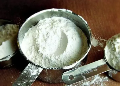 Чтобы сделать муку для торта, уберите 2 столовые ложки универсальной муки из каждой чашки и добавьте 2 столовые ложки кукурузного крахмала.