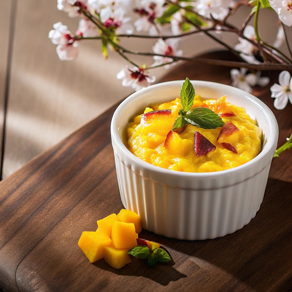 - Свежие дольки манго и мята для подачи