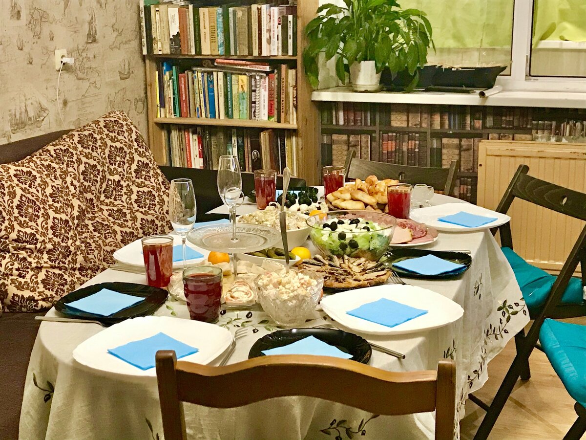 Расстояние между семьями всего 15 минут на автомобиле, что позволяет частым встречам. В этот раз за столом было множество блюд, включая: