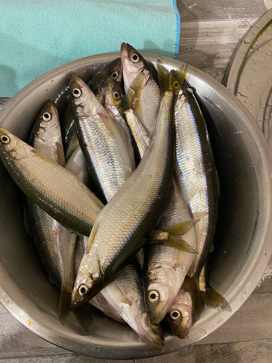 Недавний случай: приятели подарили корюшку, когда мы только прибыли в поездку. Продуктов было совсем мало, но это не стало преградой. Пара кусочков масла — и стартуем кулинарное приключение!