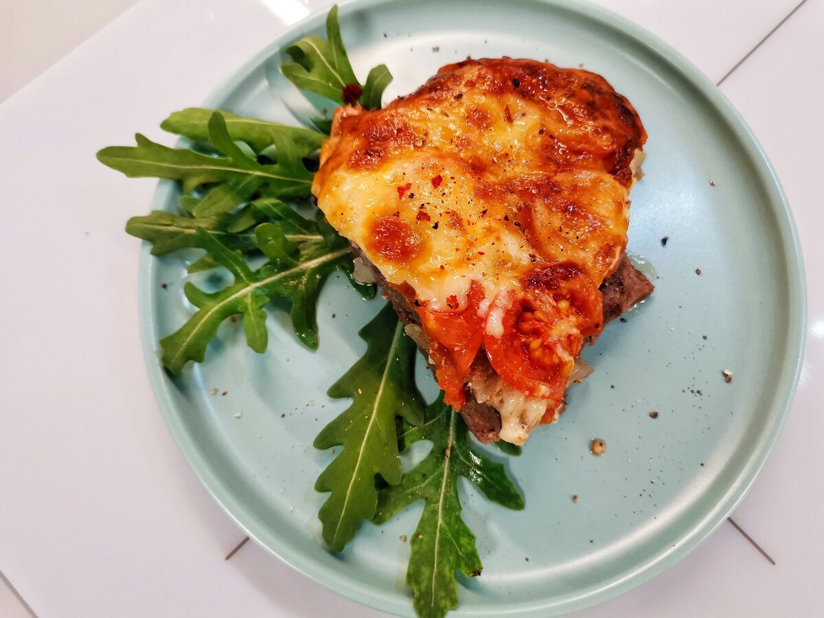 Мясо тщательно накрыть пленкой и аккуратно отбить с обеих сторон.Форму для запекания выстелить фольгой и смазать оливковым маслом.Выложить отбивные в форму и приправить смесью перцев, добавив морскую соль по вкусу.На? положить нарезанный полукольцами лук.Добавить майонез (около 2 ст.л.) и посыпать молотым черным перцем.Выкладываем нарезанные помидоры черри, толщиной 5–7 мм.Снова смазать майонезом и добавляем тертую моцареллу.В завершение, посыпать блюдо тертым пармезаном.Запекать в разогретой духовке при температуре 180°C: сначала 45 минут с фольгой, затем еще 15 минут без нее.Подавайте горячим, наслаждаясь богатым вкусом!