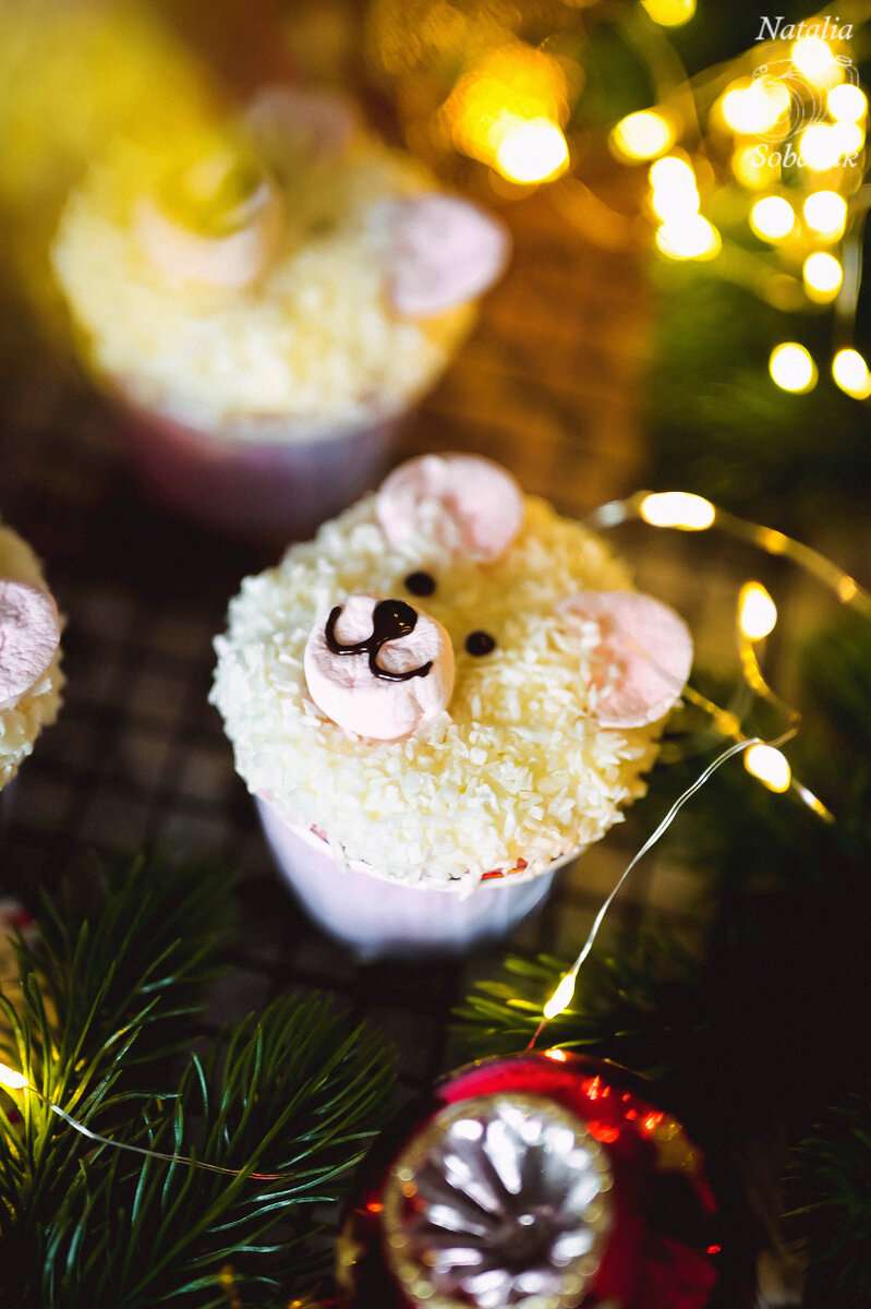 Для приготовления крема смешайте холодный творожный сыр с сахарной пудрой и взбейте до получения однородной массы. Нанесите крем на капкейки, придавая форму шапочки, и посыпьте кокосовой стружкой. Для создания забавных мишек используйте маршмеллоу для ушек и носа, а глазки и носик оформите растопленным шоколадом. Такие капкейки станут не только сладким угощением, но и настоящим украшением стола.
