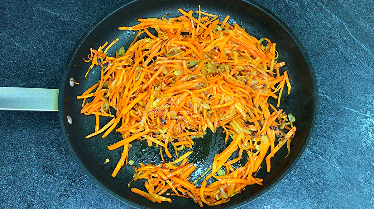 - Морковь первой: Добавление моркови в начале готовки может привести к выделению сладкого сока, который значительно изменит вкус лука и не позволит ему обрести красивый золотистый цвет. Это может испортить общую гармонию блюда.