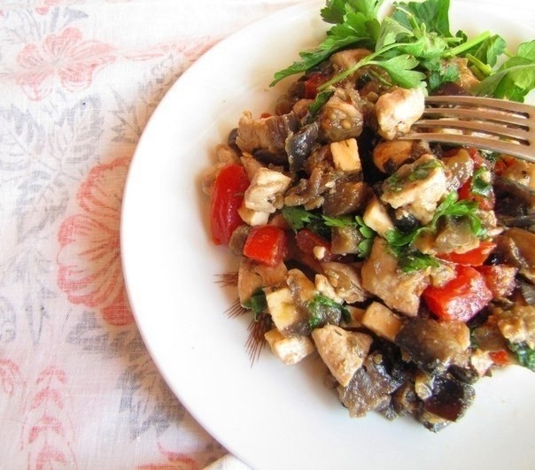 Вдохновляющий салат-закуска из курицы и баклажанов