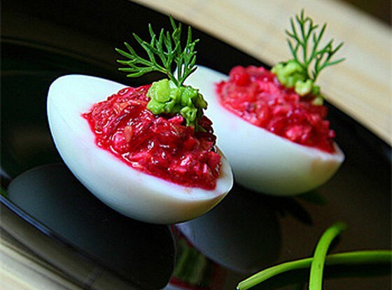 Вариант 2: Все ингредиенты мелко нарубите и тщательно перемешайте. Заправьте смесь лимонным соком и немного майонезом, чтобы создать приятный вкус. После того как начинки будут готовы, нафаршируйте ей заранее сваренные вкрутую яйца.