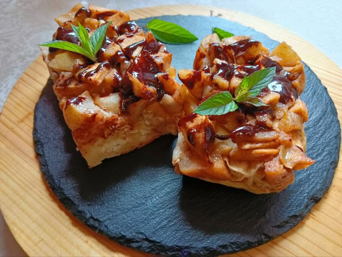 1. Начните с подготовки фруктовой начинки: нарежьте очищенные яблоко и груши кубиками. На сковороде растопите масло и выложите фрукты, добавляя сахар и корицу. Готовьте на среднем огне около 5 минут, после чего остудите.