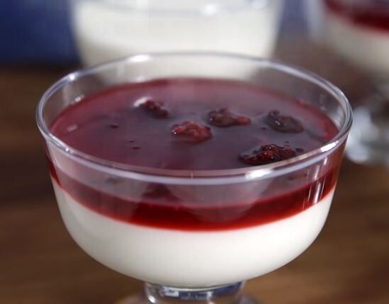 - Залейте ягодный слой на застывший творожный, по желанию можно украсить сверху целыми ягодами.