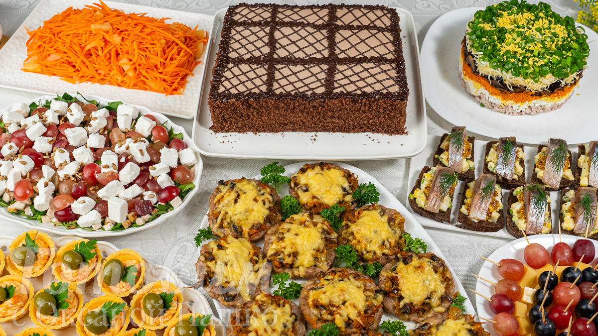 Организация праздничного стола всегда заставляет задуматься о выборе блюд. Хочется, чтобы было не только вкусно, но и красиво, не слишком дорого и разнообразно. Это меню поможет определиться, что приготовить на торжество, идеально подходя для семейных встреч и званых обедов. Расчитано на 8-10 человек, оно включает восемь блюд: три вида закусок, три вкусных салата, необычное мясное основное блюдо и, конечно же, замечательный шоколадный торт.