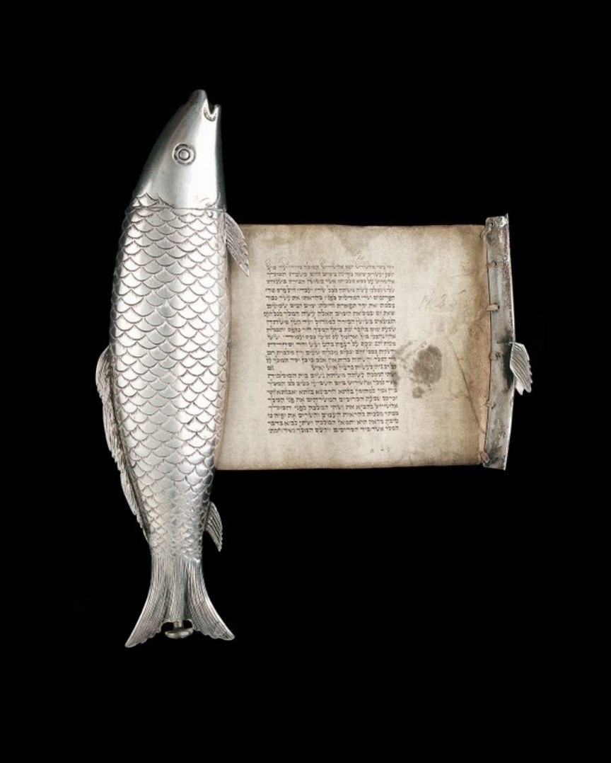 Рыба-свиток XIX века представляет собой уникальный артефакт — священный текст, содержащий в себе историю из книги Есфирь, одной из главных книг еврейской Библии (Танаха) и Ветхого Завета.