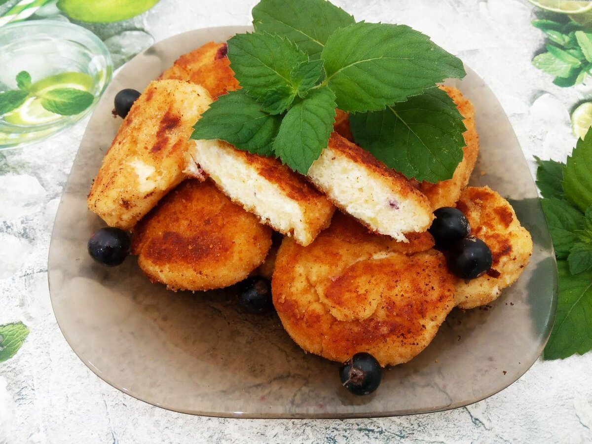 5. Из творожной массы сформировать небольшие круглые лепешки и обвалять их в панировочных сухарях.