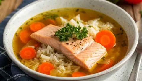 Рыбный суп с рисом — это идеальное первое блюдо, которое сочетает в себе насыщенный рыбный бульон, свежие овощи и рассыпчатый рис. Его легкая текстура и нежный аромат делают это блюдо настоящим кулинарным шедевром, который подойдёт для любого случая.