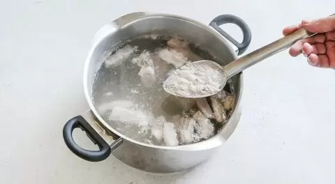 Для начала следует заняться бараниной. Мясо необходимо нарезать на крупные кусочки и положить в кастрюлю или казан. Залейте его 2,5 литрами холодной воды и поставьте на огонь. Доведите до кипения, регулярно снимая пену с поверхности. Уменьшите огонь и варите бульон на небольшом огне в течение полутора часов. По желанию, бульон можно процедить, чтобы сделать его прозрачнее, однако классический шулюм имеет насыщенный и богатый вкус с кусочками баранины.