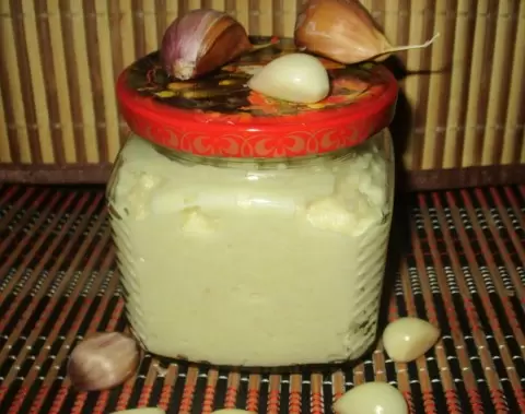 Все ингредиенты следует тщательно перемешать в блендере, пока не получится однородная паста. Получившуюся массу раскладывают по заранее подготовленным стерилизованным банкам и закрывают стерилизованными крышками. Далее заготовки следует убрать в холодильник для дальнейшего хранения.