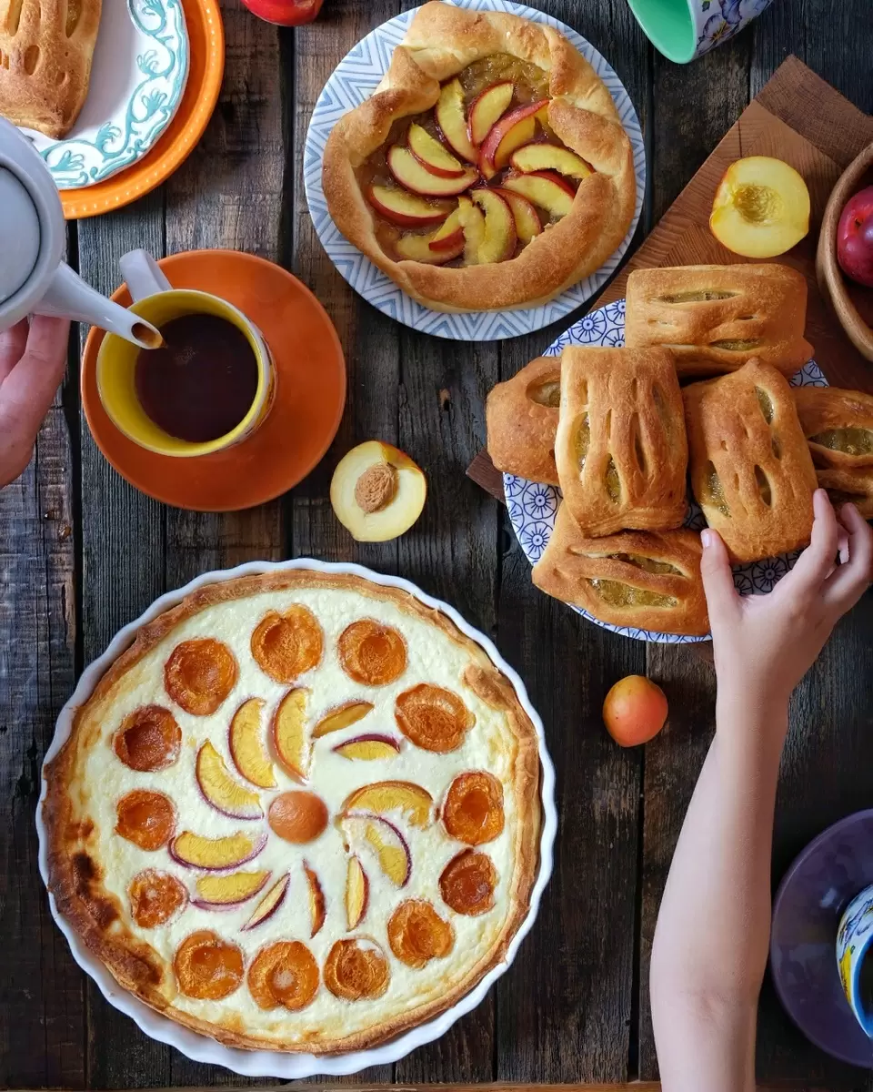 Летнее вдохновение в полном расцвете! Пирог с творогом, нектаринами и абрикосами становится настоящим кулинарным событием этого сезона. Спелые фрукты в сочетании с нежным творожным наполнителем создают великолепный контраст вкусов, который просто нельзя пропустить. Этот пирог удобно готовить, а результат впечатляет как в визуальном, так и вкусовом плане.