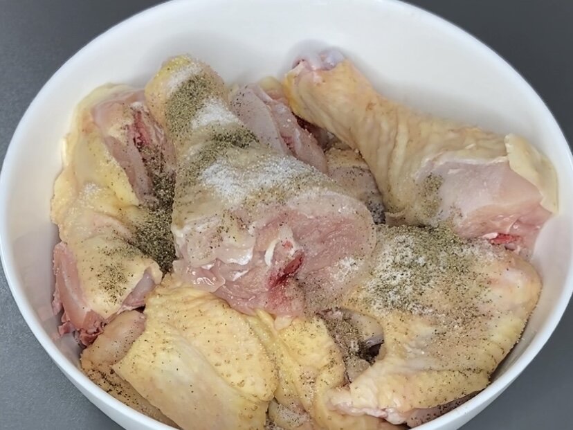 Для начала курицу необходимо нарезать на удобные кусочки – бедра и крылья идеально подойдут. Сперва курицу маринуют в соли и перце, а затем обжаривают на сливочном масле до появления золотистой корочки.